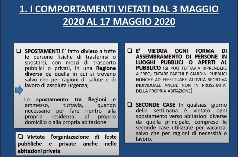 COMPORTAMENTI VIETATI DAL 3 MAGGIO 2020 AL 17 MAGGIO 2020 ( D.P.C.M.26.4.2020);