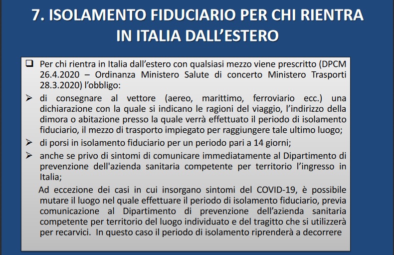 - ISOLAMENTO FIDUCIARIO PER CHI RIENTRA IN ITALIA DALL’ESTERO;