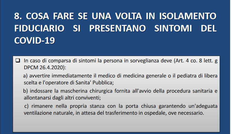 - COSA FARE SE UNA VOLTA IN ISOLAMENTO FIDUCIARIO SI PRESENTANO I SINTOMI DEL COVID-19;