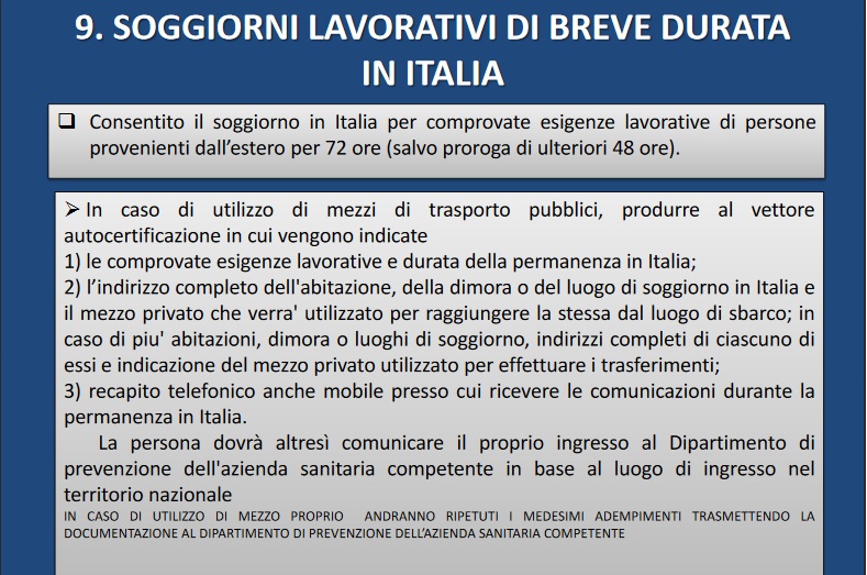 - SOGGIORNI LAVORATIVI DI BREVE DURATA IN ITALIA;