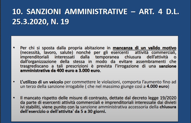 - SANZIONI AMMINISTRATIVE –ART. 4 D.L. 25.3.2020, N. 19;