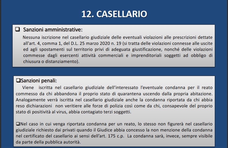 - SANZIONI PENALI IN CASO DI CONTAGIO A DANNO DI TERZI;