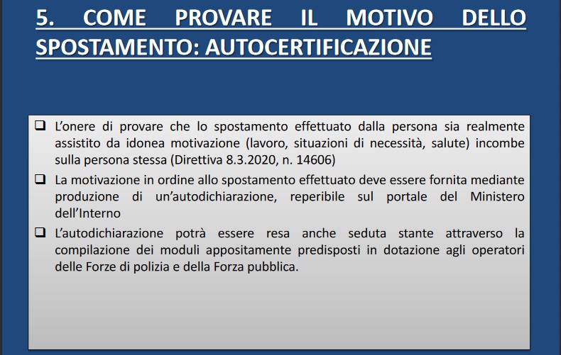 - COMEPROVARE IL MOTIVO DELLO SPOSTAMENTO: AUTOCERTIFICAZIONE;