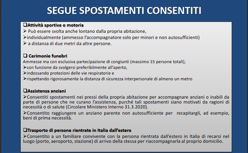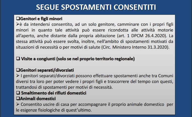 - SPOSTAMENTI E ATTIVITA’ CONSENTITE: CASISTICA;