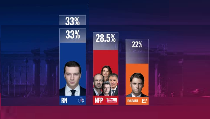 Elezioni francesi: Rassemblement National in testa con 33,2%