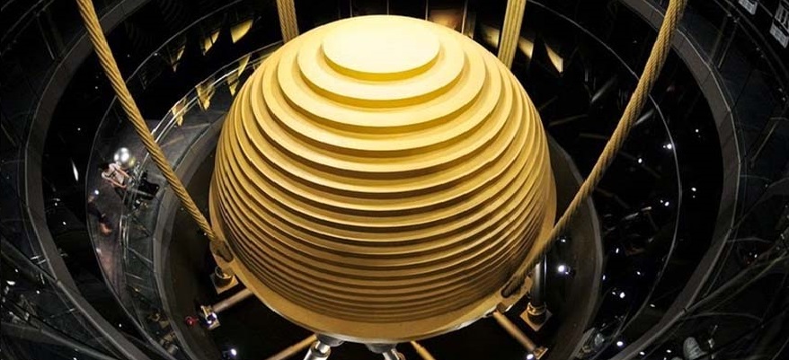 La “sfera antisismica” del Taipei 101 è un enorme pendolo in acciaio del peso di 660 tonnellate, situato tra l’87° e il 92° piano del grattacielo.
